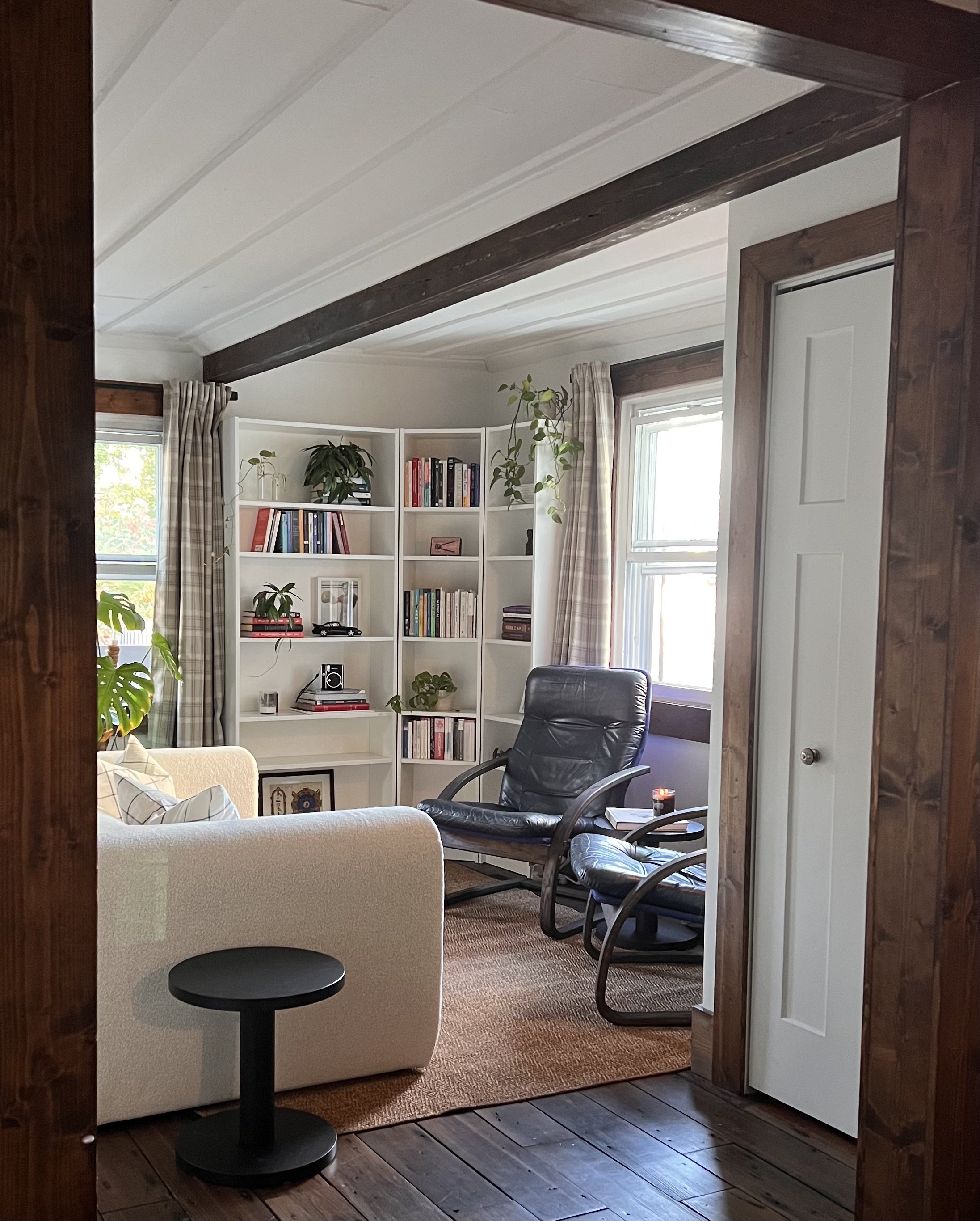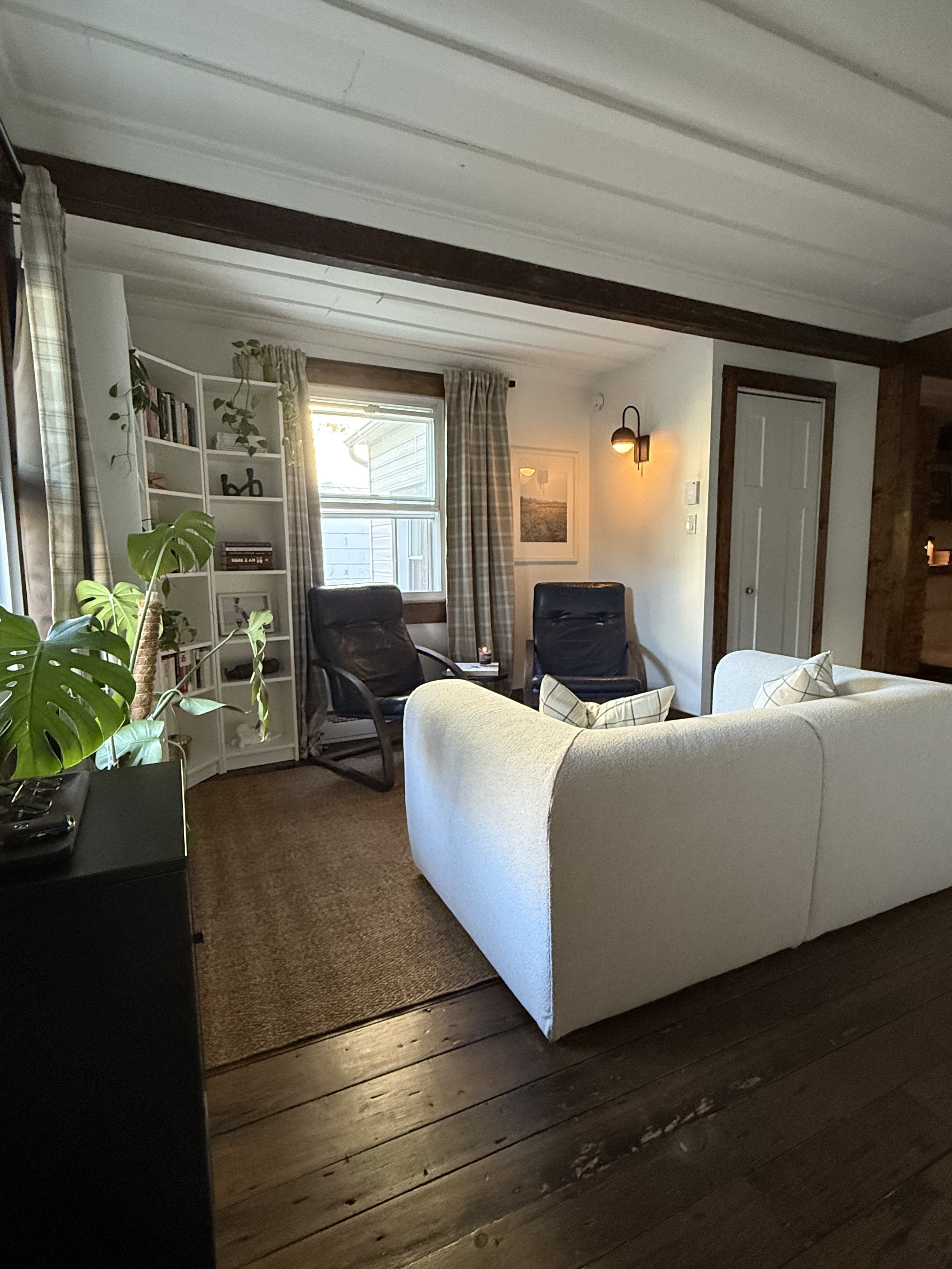 “Kayla and Pierce transformed our room, blending the 1859 charm with cherished household items to create a cohesive, lived-in atmosphere that complements our new furnishings.”
